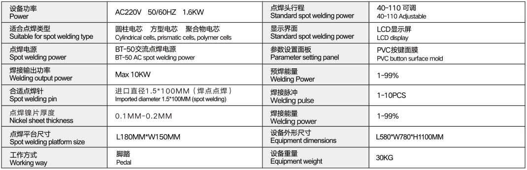 適合點(diǎn)焊類(lèi)型:圓柱電芯 方型電芯型 聚合物電芯
